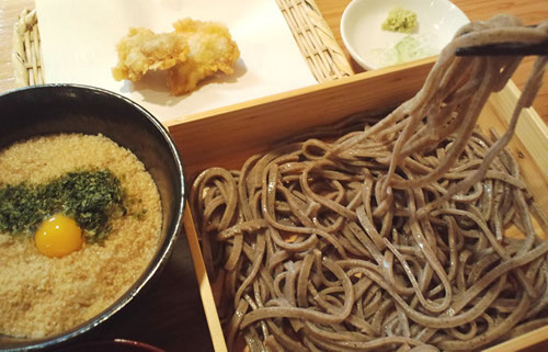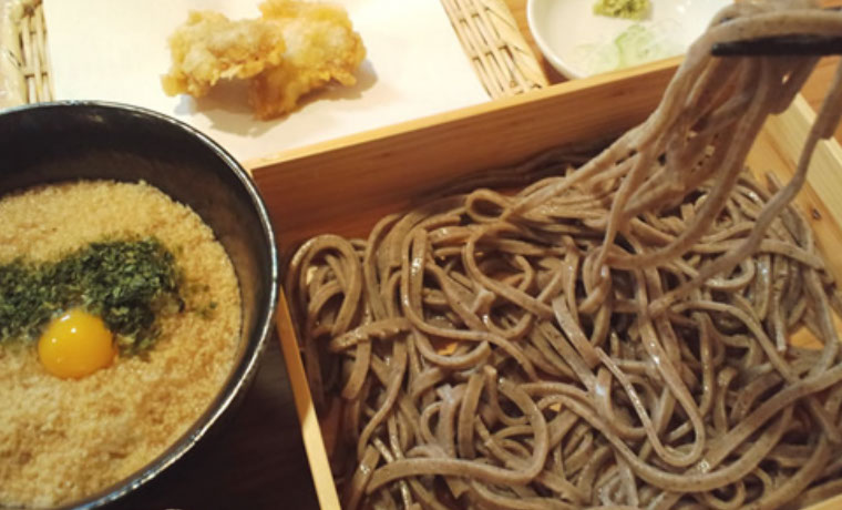 山形産の超粗挽き蕎麦粉のみを使用したザクザク噛みしめて食べる十割蕎麦と純米酒の店。店主厳選の全国純米酒は週替わりで20種類ほどご用意。